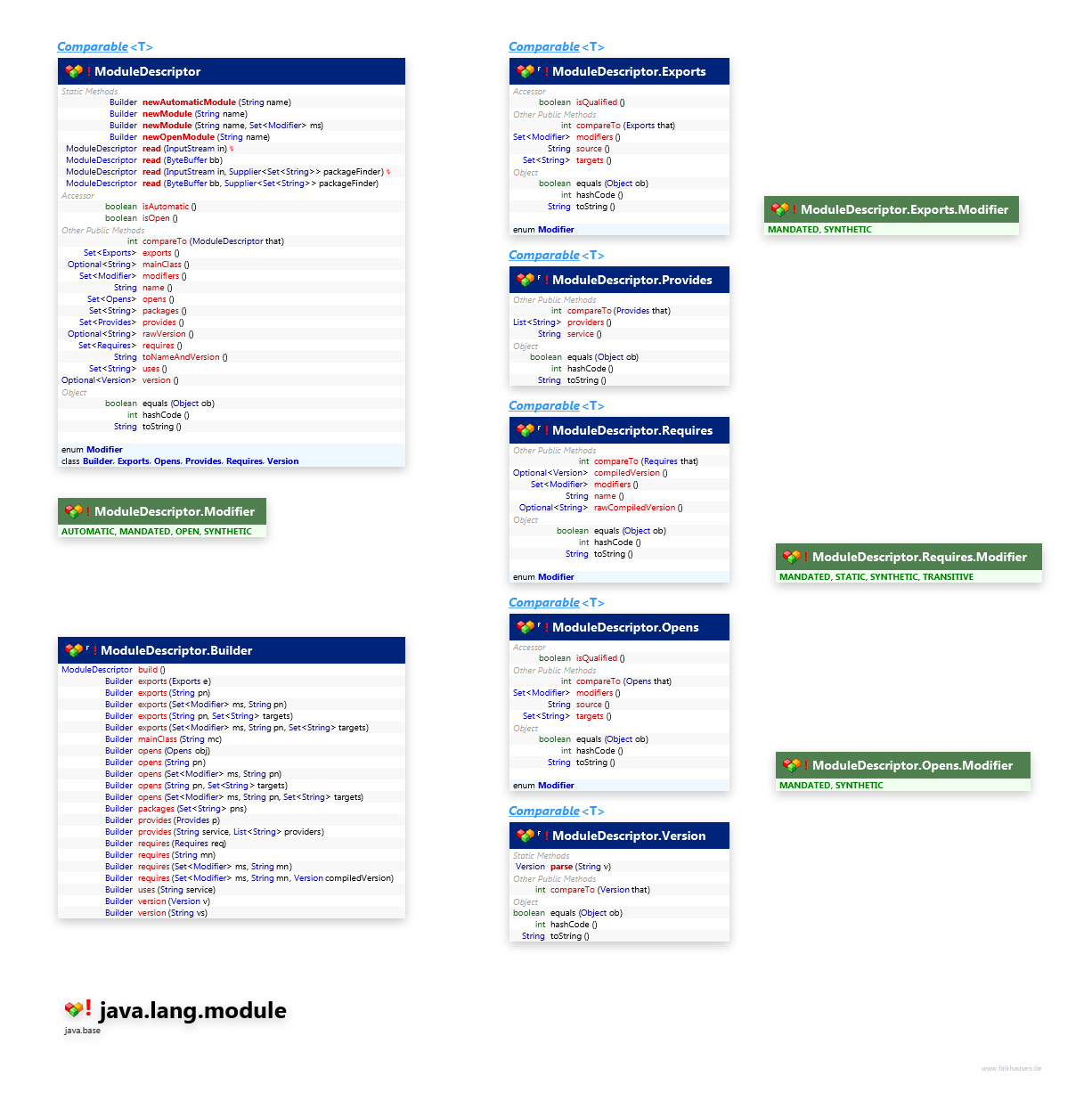 ModuleDescriptor, Builder, Exports, Modifier, Modifier, Opens, Modifier, Provides, Requires, Modifier, Version