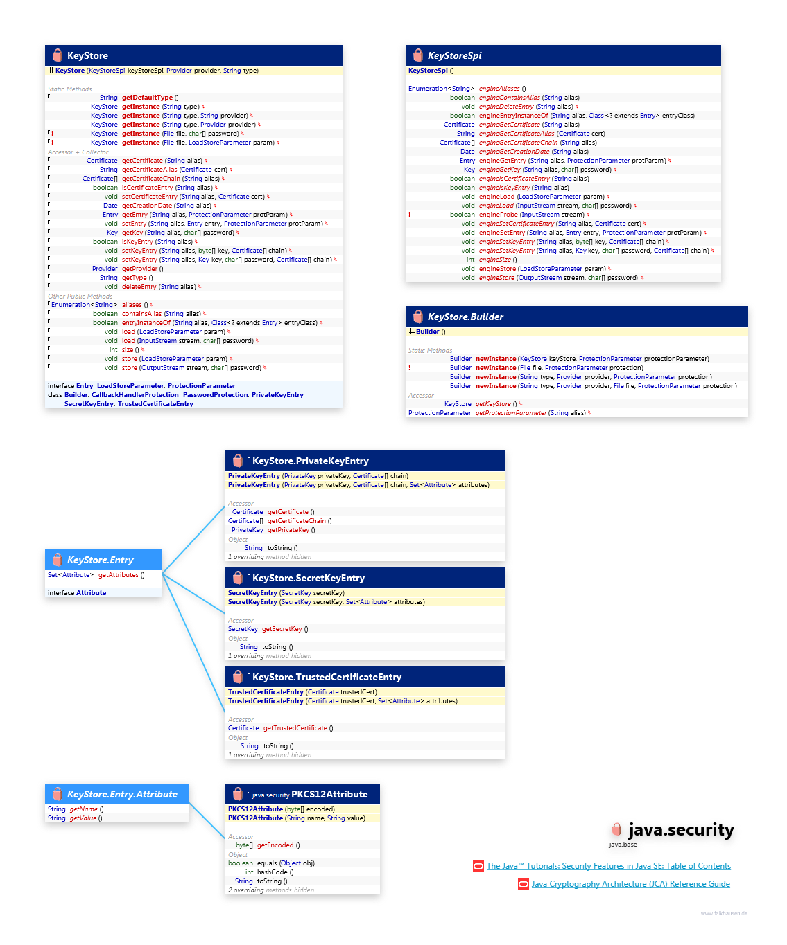KeyStore, Builder, Entry, Attribute, PrivateKeyEntry, SecretKeyEntry, TrustedCertificateEntry, KeyStoreSpi, PKCS12Attribute
